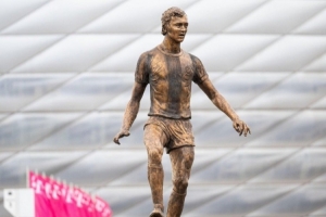 體育資訊9月13日訊 安聯(lián)球場外的貝肯鮑爾雕像已經(jīng)揭幕,拜仁高層們一同在雕像前合影。