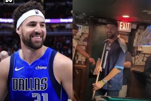 體育資訊9月13日訊 獨(dú)行俠球員克萊-湯普森被拍到在一家小酒吧里打臺(tái)球,對(duì)手失誤沒有打進(jìn)黑球,克萊順勢(shì)逆轉(zhuǎn)贏下比賽。
