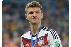 德國隊社媒曬出穆勒與大力神杯的合照,配文:“生日快樂,托馬斯!2014年世界杯冠軍、2010年世界杯最佳射手?!?/p>