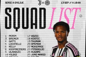 體育資訊9月13日訊 北京時間明天凌晨0點(diǎn),尤文將在意甲第三輪比賽中主場對陣國米,尤文公布了此役的球員名單。