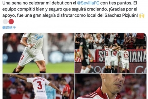 阿茲皮利奎塔:很遺憾未能和塞維利亞以三分慶祝我的首秀。球隊的表現(xiàn)不錯,并且肯定會繼續(xù)進步。感謝大家的支持,在主場皮斯胡安球場真的是太開心了。