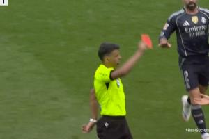 體育資訊09月13日訊 西甲第4輪,皇家馬德里vs皇家社會(huì)。上半場(chǎng)比賽中,皇馬后衛(wèi)赫伊森犯規(guī)破壞皇家社會(huì)反擊,被主裁曼薩諾直紅罰下,而這也不是曼薩諾與皇馬之間的第一次故事。
