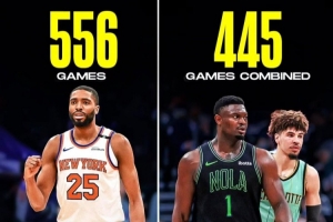 美媒Clutchpoints曬圖,布里奇斯生涯出場(chǎng)556次,錫安和三球加起來(lái)445次。