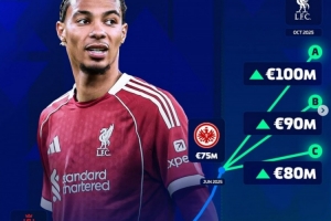 ?;倏四壳吧韮r7500萬歐,他在今夏以9500萬歐的轉(zhuǎn)會費加盟利物浦,并且在賽季初表現(xiàn)不俗。德轉(zhuǎn)給出埃基蒂克更新后的身價選項分別有8000萬歐、9000萬歐以及1億歐。