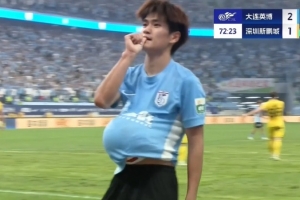 體育資訊9月15日訊 大連英博本輪2-1擊敗深圳新鵬城,劉祝潤進(jìn)球后做出將球放進(jìn)懷里以及吸手指的慶祝動作,他賽后表示自己老婆懷孕了。