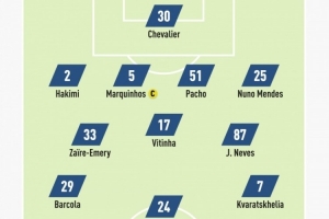 隊報預(yù)測巴黎首發(fā):巴爾科拉、馬尤盧、K77三叉戟,登貝萊替補