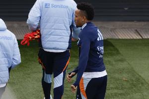 然而,在伯納烏球場慘敗后的第二天,另一段比賽畫面引起了廣泛討論。上半場,孔多比亞在禁區(qū)外射門時,米利唐用手臂將球擋向隊友赫伊森,后者也用手觸到了球。