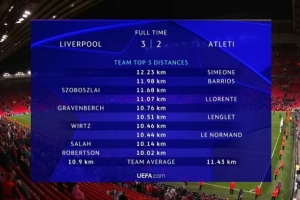 體育資訊9月18日訊 歐冠聯(lián)賽階段第一輪比賽,利物浦主場3-2擊敗馬競,本場比賽朱利亞諾-西蒙尼跑動12.23公里全場最多。