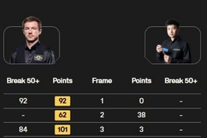 體育資訊9月18日訊 2025斯諾克英格蘭公開(kāi)賽32進(jìn)16輪次,趙心童對(duì)陣杰克-利索夫斯基,全場(chǎng)比賽利索夫斯基打出三桿50+,趙心童打出一桿50+,最終趙心童1-4不敵利索夫斯基,無(wú)緣16強(qiáng)。