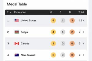 2、肯尼亞,4金1銀2銅,7塊獎(jiǎng)牌