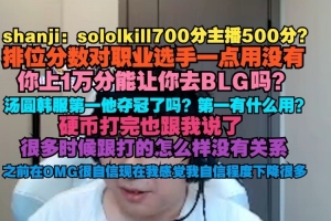 shanji:sololkill700分主播500分?排位分數(shù)對職業(yè)選手一點用沒有,你上1萬分能讓你去BLG嗎?湯圓韓服他奪冠了嗎?第一有什么用?