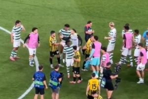 體育資訊9月20日訊 在本輪歐冠聯(lián)賽,葡體4-1擊敗阿拉木圖凱拉特,將在明年加盟切爾西的昆代和薩特帕耶夫在賽后進(jìn)行了問候。