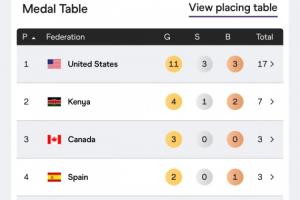 2、肯尼亞,4金1銀2銅,7塊獎(jiǎng)牌