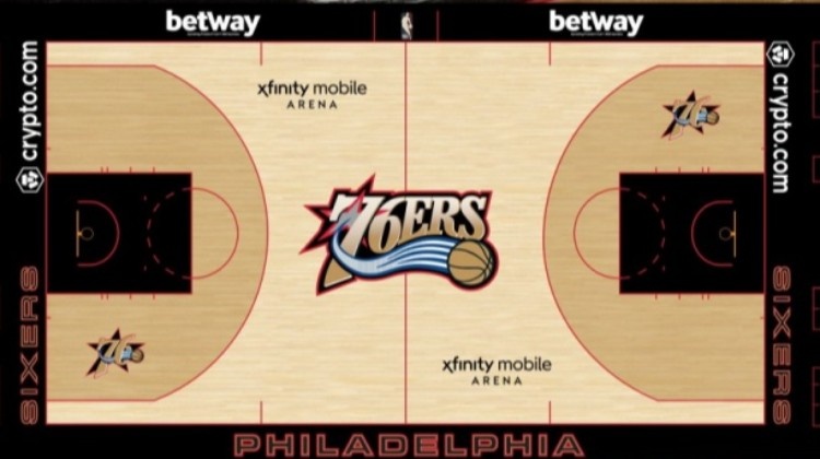 體育資訊9月20日訊 費城76人官方曬出了復古造型的球場地板涂裝,并神秘的寫到:“懂的人自然懂?!?/p>
