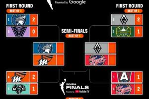 體育資訊09月20日訊 WNBA季后賽首輪戰(zhàn)罷,半決賽對(duì)陣確定,具體對(duì)陣如下: