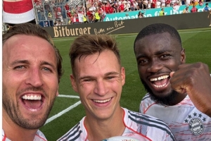 本場(chǎng)比賽凱恩上演帽子戲法,拜仁官推也在賽后曬出凱恩與隊(duì)友基米希、于帕以及比賽用球的合影。