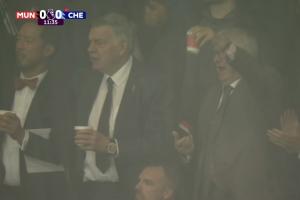 之后鏡頭給到看臺,現(xiàn)場觀戰(zhàn)的弗格森爵士興奮慶祝!
