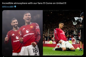卡塞米羅曬出自己的賽場照,并配文:球迷們營造的氛圍簡直太棒了?。。〖佑吐?lián)?。?!