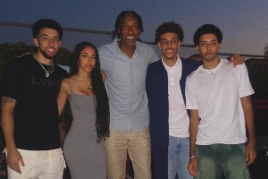 據(jù)美媒統(tǒng)計,皮蓬一共生了7位子女,圖中的4個孩子均與拉爾薩所生,分別是小皮蓬(24歲,左一)、普雷斯頓(23歲,右一)、賈斯?。?0歲,右二)和索菲婭(16歲)。