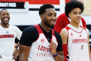 體育資訊9月21日訊 路易斯維爾大學籃球隊社媒更新動態(tài),曬出了一組校友米切爾和?;@球隊隊員們一同訓練、打?qū)官惖恼掌?/p>