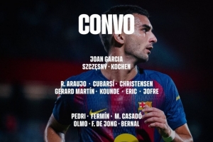 體育資訊9月21日訊 北京時間明天凌晨3點,巴薩將在西甲第5輪比賽中主場對陣赫塔費,巴薩公布了此役的球員名單,萊萬、庫巴西、拉什福德在列,亞馬爾、加維、巴爾德仍然缺席。