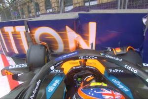 體育資訊09月21日訊 F1阿塞拜疆大獎賽正賽,皮亞斯特里首圈上墻,安全車出動。