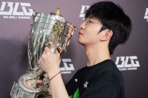 體育資訊9月21日訊 BLG下路選手Elk曬獎(jiǎng)杯親吻照:我們是冠軍??