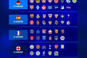 體育資訊9月22日訊 德國轉(zhuǎn)會市場統(tǒng)計了1992-93賽季歐冠改制以來,歐洲五大聯(lián)賽參加歐冠正賽情況,德甲共15隊出現(xiàn)在歐冠賽場最多,意甲11隊最少。