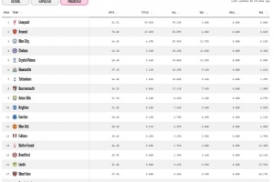 以下為英超各隊奪冠概率具體預(yù)測情況(僅統(tǒng)計概率超1%球隊):
