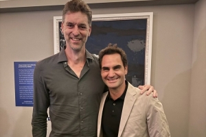 體育資訊9月22日訊 今天,前NBA球員保羅-加索爾在社媒上曬出了和網(wǎng)球名將費德勒的合影。