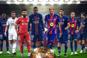 登貝萊(巴黎)、哈蘭德(曼城)、若奧-內(nèi)維斯(巴黎)、貝林厄姆(皇馬)、萊萬(wàn)(巴薩)