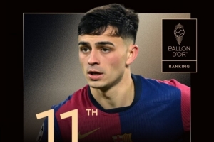 體育資訊9月23日訊 2025年金球獎排名出爐,巴薩中場佩德里排在第11位。