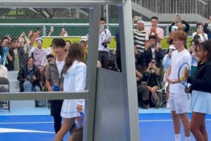 2025年中網在北京展開,本站賽事迎來復出的鄭欽文賽前出席活動,他與藝人吳尊擊掌致意。今年法網女單第1輪,吳尊現(xiàn)場觀看了鄭欽文的比賽。