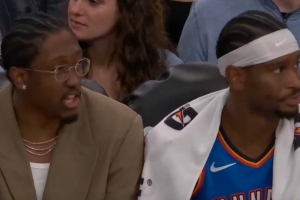 養(yǎng)傷不忘練默契!杰倫威板凳席上與亞歷山大神同步轉(zhuǎn)頭