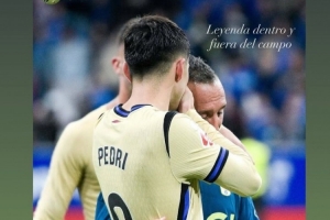 佩德里社媒曬出照片,配文:“場上場下都是傳奇。”