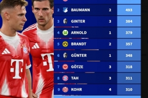 體育資訊9月26日訊 德國(guó)轉(zhuǎn)會(huì)市場(chǎng)盤點(diǎn)了德甲現(xiàn)役球員聯(lián)賽出場(chǎng)數(shù),諾伊爾以527場(chǎng)居首,基米希、格雷茨卡均299場(chǎng)闖進(jìn)前10,即將迎來(lái)300場(chǎng)里程碑。