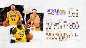 體育資訊9月27日訊 今天,湖人官推曬出了橫豎兩版的湖人賽程壁紙。