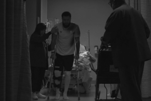 視頻中記錄了范弗里特受傷后被推進手術(shù)室,已經(jīng)躺在病床上的一些鏡頭。