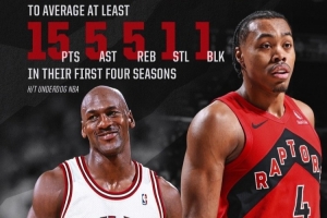 生涯前四季,斯科蒂-巴恩斯場均17.2分7.5籃板5助攻1.2搶斷1蓋帽;喬丹前四季場均32.7分5.6籃板5.3助攻2.8喬丹1.3蓋帽。