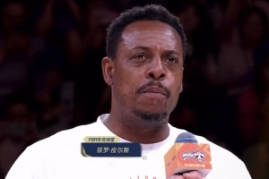 在賽前皮爾斯接受了現(xiàn)場主持人的采訪,評出歷史最佳陣容:“很容易選??匦l(wèi)我選魔術(shù)師約翰遜,得分后衛(wèi)我選邁克爾-喬丹,三號位我選勒布朗(詹姆斯),四號位我選凱文-加內(nèi)特,五號位我會選奧尼爾?!?/p>