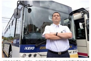從2013年加入京王巴士到2022年,數(shù)馬正浩擔任了9年的巴士司機。“入職后,公司幫我考取了大型二類駕照。司機肩負著乘客的生命安全,我始終想著要承擔起這份責任,穩(wěn)穩(wěn)地將乘客送到目的地。有時會聽到乘客稱贊‘你開得真好’,這給了我很大鼓勵?!?/p>