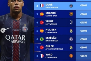 足壇U20球員身價榜:亞馬爾2億歐居首,杜埃次席,庫巴西第三