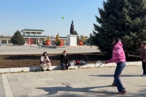前美網冠軍拉杜卡努回沈陽探親,在公園與大媽打起網球