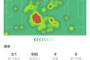 進(jìn)1球、射門(mén)2次射正1次、丟失球權(quán)19次、預(yù)期進(jìn)球0.8