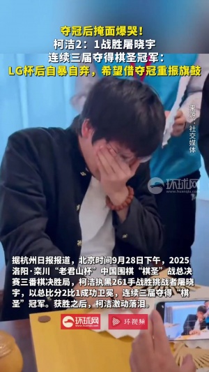 體育資訊09月29日訊 昨日下午,2025洛陽·欒川“老君山杯”中國圍棋“棋圣”戰(zhàn)總決賽三番棋決勝局,柯潔執(zhí)黑261手戰(zhàn)勝挑戰(zhàn)者屠曉宇,以總比分2比1成功衛(wèi)冕,連續(xù)三屆奪得“棋圣”冠軍。獲勝之后,柯潔激動(dòng)落淚。