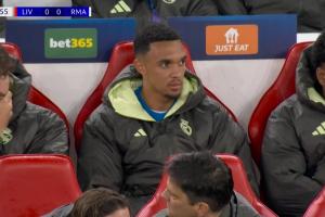 何時(shí)登場?第21分鐘,轉(zhuǎn)播鏡頭給到替補(bǔ)席阿諾德