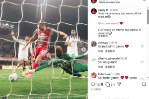 38歲瓦爾迪社媒曬照:花了點(diǎn)時(shí)間,但總算打入克雷莫內(nèi)塞首球了