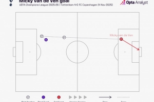 奔襲!范德芬?guī)?7.7米后破門,創(chuàng)造2015年有統(tǒng)計以來歐冠紀錄
