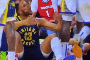 你抱怨啥?布拉德利撞翻庫(kù)里被吹犯規(guī)送后者3+1 坐在地上喋喋不休