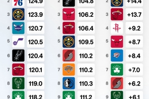 球隊(duì)進(jìn)攻&防守效率及凈效率排名!火箭進(jìn)攻效率第1 馬刺凈效率第1